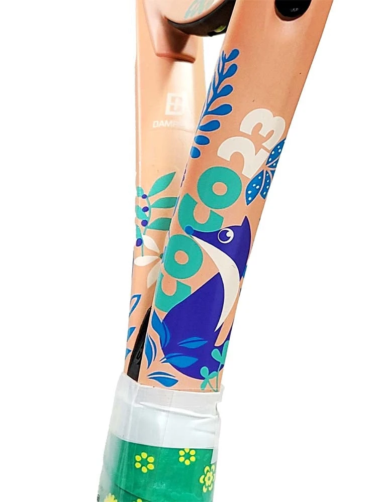 Designed for kids aged 6 to 8 years old who are beginning to play tennis, the 23-inch COCO 23 TENNIS RACQUET features a vibrant, colorful design and the Damp+ insert to reduce vibration. Adding to the entertainment, the racquet’s colorful header-card features an animal design which can be worn as a mask, and the racquet also comes with stickers.