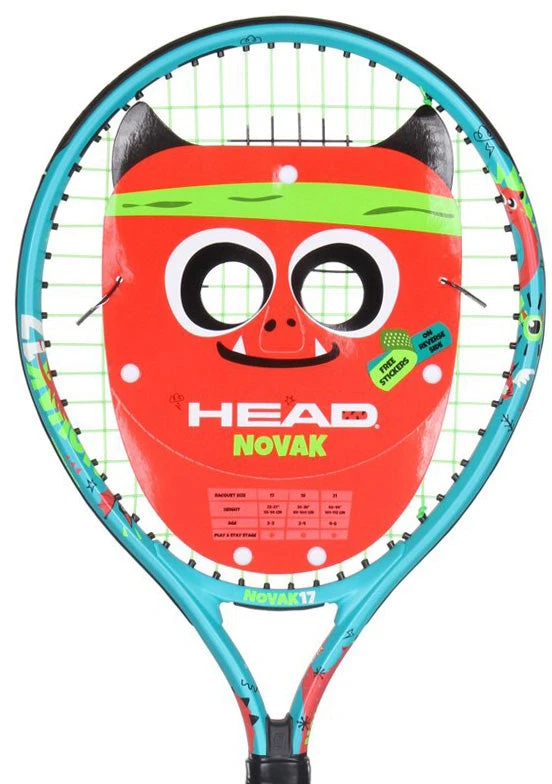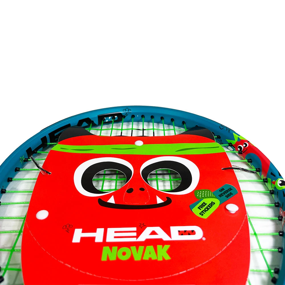 Specially designed for novice tennis players aged 2-3, the 17″ Head Novak 17 TENNIS RACQUET is a vibrant, eye-catching model. This piece of equipment is endorsed by tennis ambassador Novak Djokovic, and features the Damp+ insert for vibration dampening. Additionally, the racquet includes a creative header-card in the form of a colorful monster mask and a set of stickers.