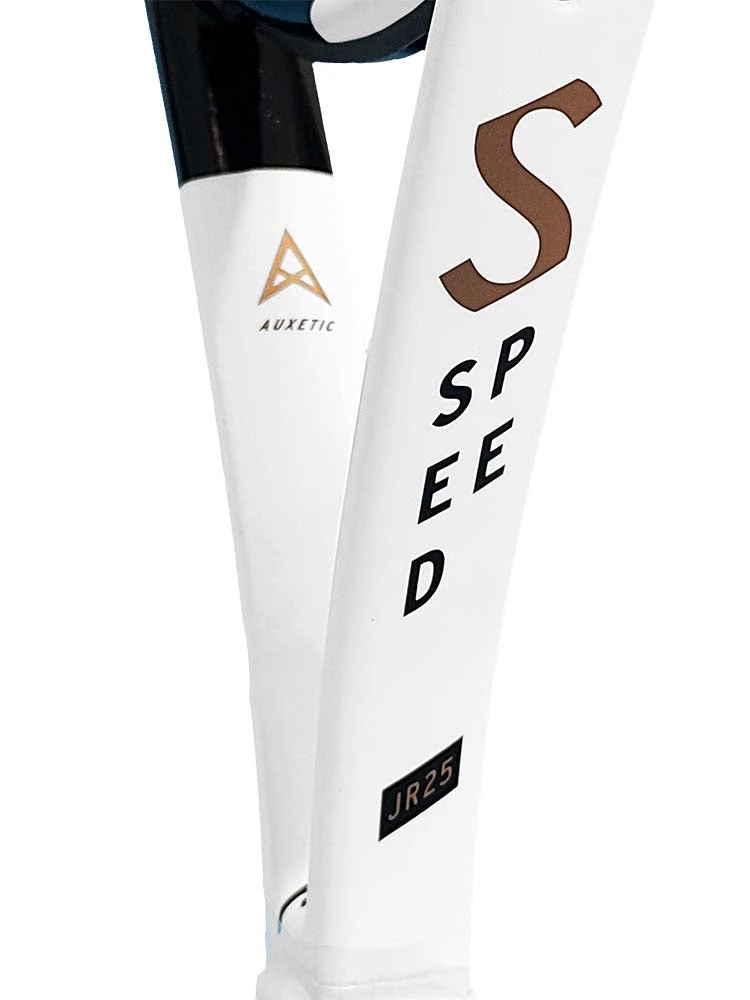 The SPEED JR 25 TENNIS RACQUET is a lightweight, 25-inch version of the MP model in the adult SPEED series, designed for ambitious kids aged 8 to 10 with fast games. Young tennis players who look up to HEAD ambassador Novak Djokovic, who uses an adult SPEED racquet, will appreciate the easy handling and sensational feel provided by the new Auxetic construction. The racquet comes with a modern, striking design and is a great choice for ambitious juniors looking to improve their game.