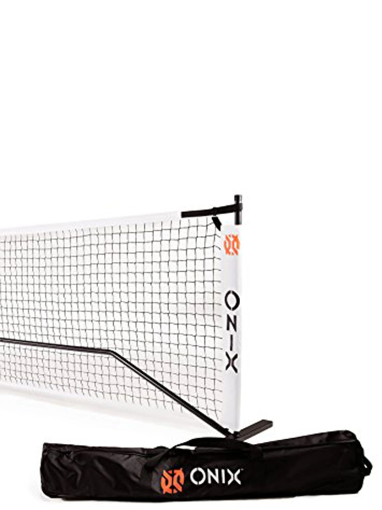 Play pickleball anytime, anywhere with the Onix Portable Pickleball Net. This high-quality net is USAPA regulation size, offers convenient portability, and delivers exceptional play on the court. Perfect for multi-purpose gym spaces, the local park, or even in your driveway, this portable net lets you take the game anywhere you can setup a court, but packs into a compact. Assembled Net Dimensions: 34”H x 22’W. Carrying Case Dimensions: 40”L x 7”W x 5”H. Total Weight: 25 lbs.