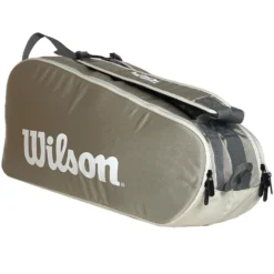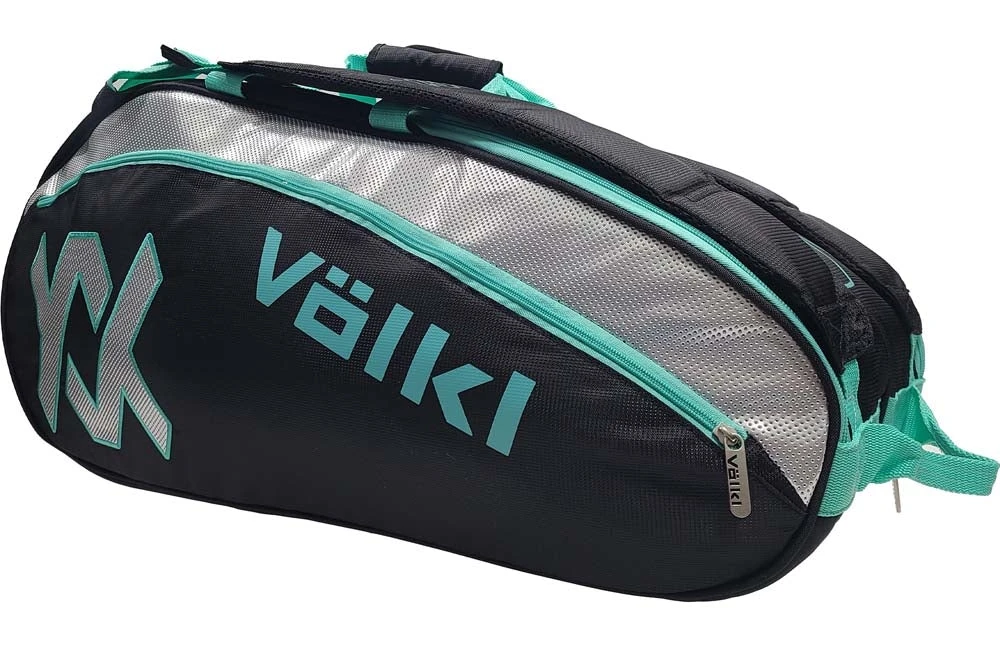 This Volkl Bag have two racquet compartments, one with silver thermal climate controlled lining. Two zippered front sleeve pockets for valuables. One inside zippered pocket for valuables. One zippered shoe pocket. Holds six to nine racquets.