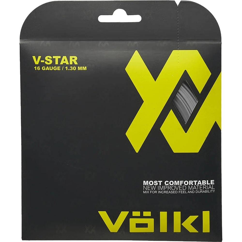 V-Star is a smooth finish co-polymer string using advanced material technology. It offers outstanding durability and tension maintenance. Most played will find it to be one of the softest co-polymer strings on the market today. The wide range of gauges and soft feel make it easy to find the V-Star right for nearly any player. Players looking for one of the softest polys on the market with good spin and control should give V-Star a try!