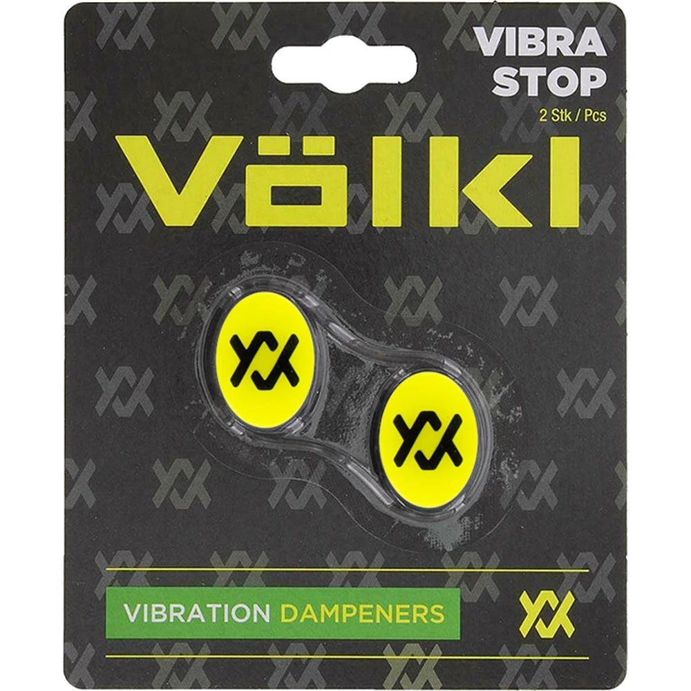 The Vibrastop 2 pack bears the Volkl logo. Additionally, they change the frequency of the strings, resulting in a solid sound on impact and reduced string vibration.