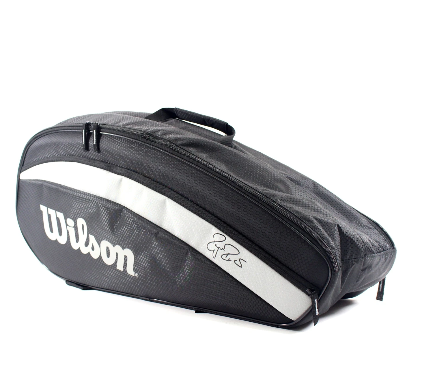 Inspired by Roger’s new black and white Pro Staff racket design, the Fed Team 6 Pack features a clean, uncontaminated style that emanates a bold look and feel. This bag holds 6 rackets, contains exterior side pockets for additional personal storage, and showcases Roger’s legendary signature on the side. Colour Shown: Black/White.