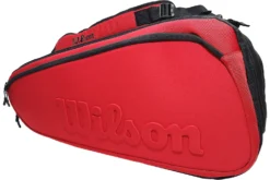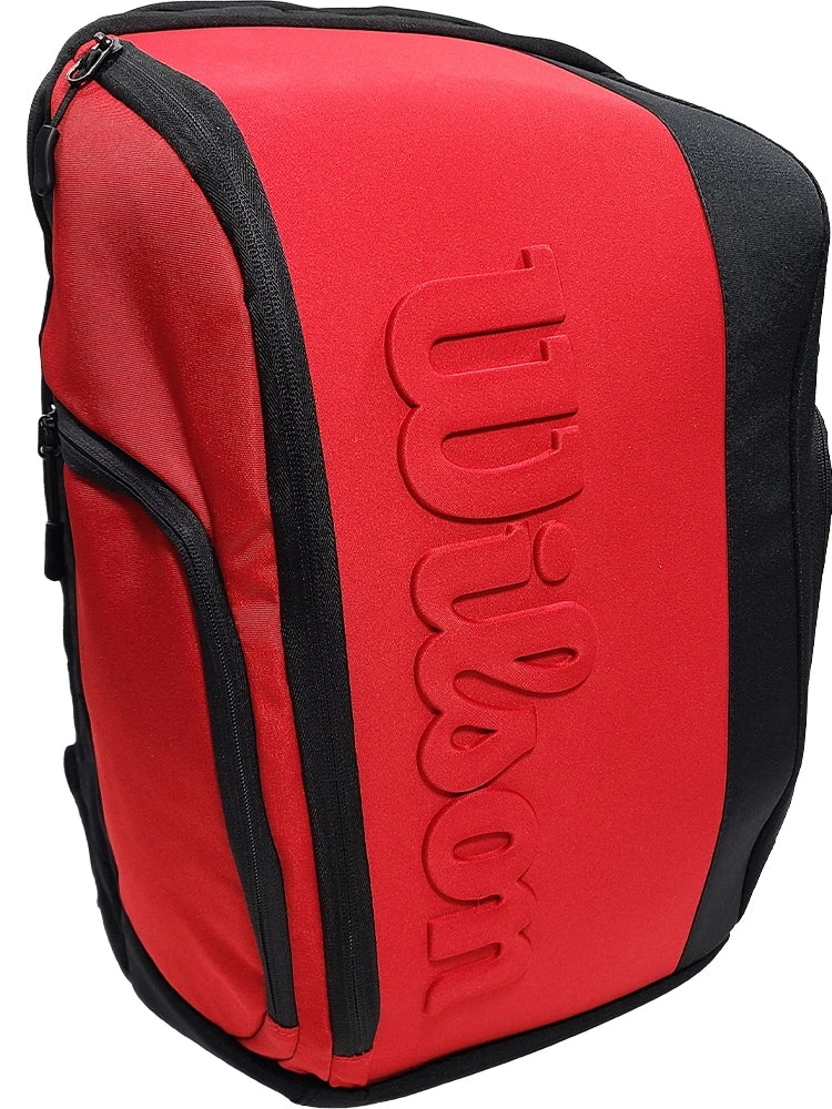 The perfect accomplice to a groundbreaking racket franchise, the Clash v2 Super Tour collection integrates rich, innovative design with a plethora of beneficial features for tennis players. This Super Tour Backpack holds up to two tennis rackets in a padded compartment with locking zippers. Additional features include a side zip pocket lined with Thermoguard to keep water or snacks cool, a ventilated pocket perfect for dirty shoes or clothing, and an interior sleeve in the main compartment for laptops or tablets. Comprising a recycled PET polyester shell fabric made from 10 PET bottles, this bag’s innovative design superbly complements the Clash v2 performance racket line with its rich, red hue and embossed Wilson logo.