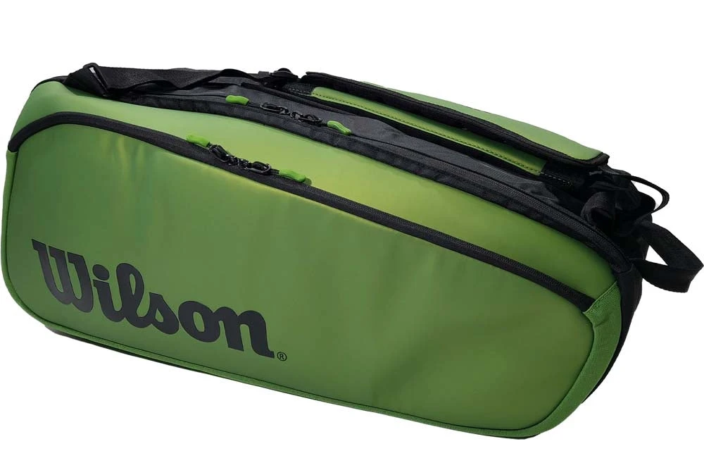 With the all new Wilson Blade Super Tour, carry the bag the pros carry. Minimalistic design meets remarkable functionality with the large Super Tour 2 Comp. This bag holds up to 9 rackets and includes a plethora of features optimized for serious tennis players: dual air vents to let your equipment and gear breathe, Thermoguard lining to protect objects from extreme heat, and an interior hidden zippered pocket to house valuables you like to carry with you on the road. Adjustable backpack and shoulder straps provide dual carrying options, while an extra compartment makes it possible to hide the shoulder straps.